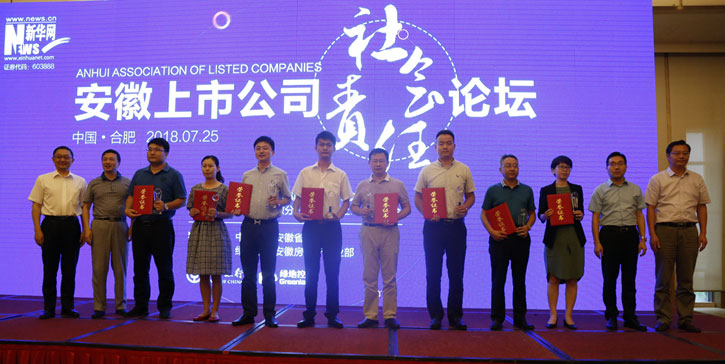 7月25日下午,由新華網(wǎng)、安徽證監(jiān)局、扶貧辦指導(dǎo),新華網(wǎng)安徽分公司與安徽上市公司協(xié)會共同主辦的安徽上市公司社會責(zé)任論壇在合肥隆重召開,會議表彰了批在“安徽上市公司扶貧在行動”活動中成果豐碩的秀上市公司,其中皖維高新等8家公司由于在履行社會責(zé)任工作中表現(xiàn)積,成績突出,被主辦單位授予安徽上市公司履行社會責(zé)任“貢獻獎”。