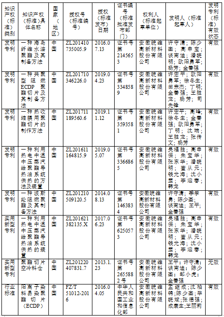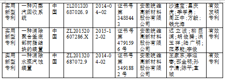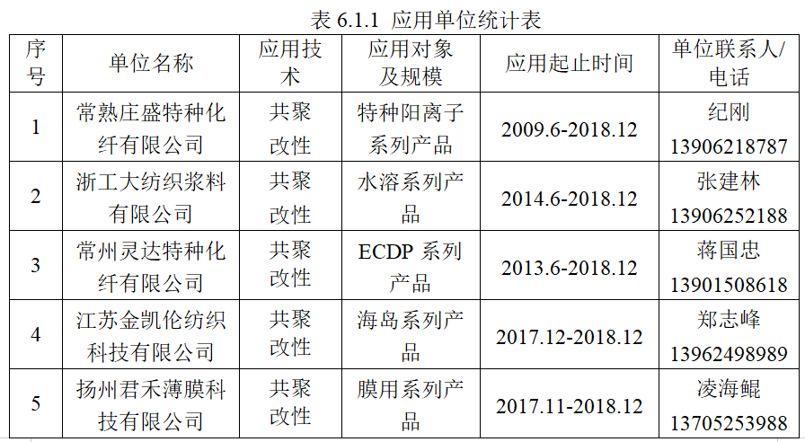 2019年4月24日,安徽省科學(xué)技術(shù)情報研究所對皖維公司“基于有機(jī)無機(jī)雜化鈦系催化劑的高級特種陽離子聚酯樹脂的產(chǎn)業(yè)化”項目科研成果開展技術(shù)查新,其查新結(jié)論是:本課題所研究的鈦系催化劑開發(fā)及應(yīng)用于特種陽離子聚酯的產(chǎn)業(yè)化研究,采用東華大學(xué)研發(fā)的尺度片狀鈦系聚酯催化劑在酯化釜在線添加,采用管道在線添加高含量(12%,常規(guī)2.5%)改性單體間苯二甲酸-5-磺酸鈉,并與動、靜態(tài)混合器相結(jié)合的方法,這在檢測報告中的相關(guān)文獻(xiàn)中未見其他單位有相同內(nèi)容的報道(附件2.2.1)。