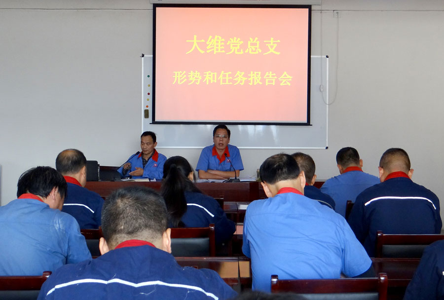 10月12日上午,大維黨總支召開形勢和任務(wù)報告會,分廠黨總支書記秦旱生、副書記孔令春及三十余名黨員參加會議。