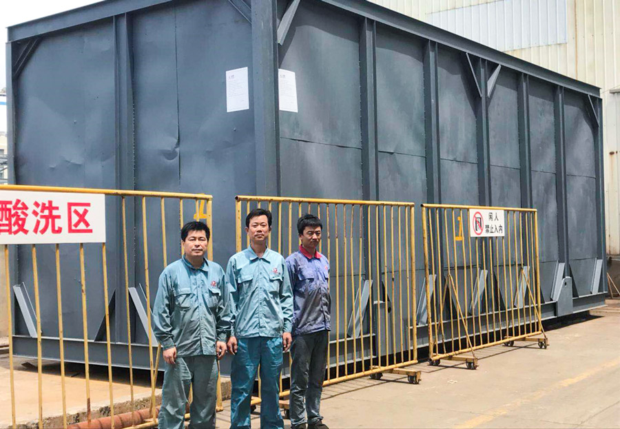 16毫米厚、2.5米寬的Q345R板在卷板時(shí)已經(jīng)達(dá)到卷板機(jī)的限,寬度的局限性讓卷板過(guò)程不能出現(xiàn)絲毫偏差,否則重新卷板將十分困難,大家相互提醒,點(diǎn)點(diǎn)調(diào)整,卷板次性成功。焊接是個(gè)漫長(zhǎng)而又難熬的過(guò)程,制作組“白加黑”,火紅的焊花始終閃耀著。4月28日上午,這臺(tái)直徑3.8米、長(zhǎng)度9.5米的二氧化硫儲(chǔ)罐完成焊接后,所有位探傷合格率達(dá)到100 precent,之后打壓試驗(yàn)又次性通過(guò),這臺(tái)設(shè)備創(chuàng)造了多項(xiàng)記錄。經(jīng)過(guò)防腐、包裝后,5月初設(shè)備由吊車徐徐裝入集裝箱。這臺(tái)設(shè)備將帶著機(jī)械分廠全體職工的驕傲,去接受國(guó)際水準(zhǔn)的檢驗(yàn)!