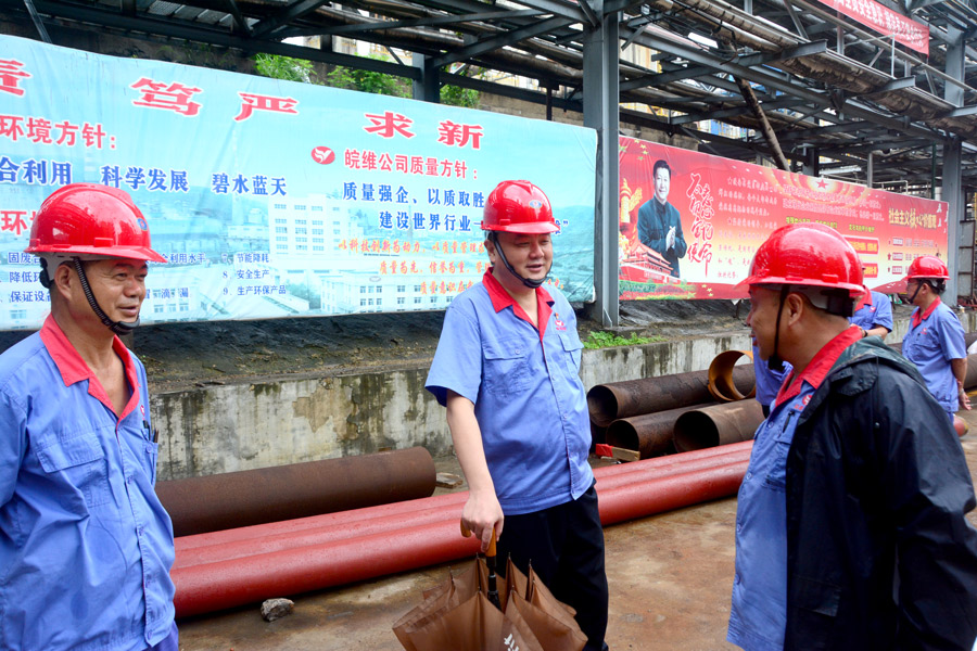 7月21日下午3時(shí)許,天空下起了大雨,集團(tuán)黨委書(shū)記、董事長(zhǎng)吳福勝手撐雨傘,腳穿雨靴,深入化工系統(tǒng)大修現(xiàn)場(chǎng)檢查指導(dǎo)工作。