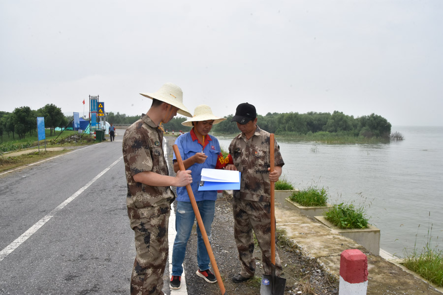 在這緊要關(guān)頭,皖維組建了支防汛抗洪救險突擊隊(duì)。從公司發(fā)出通知到突擊隊(duì)名單形成,不到三個小時。有些單位報名人數(shù)大大超過了需要,只能從中篩選。沒有被選上的職工,還特意打了招呼:“如果有誰忙不過來,隨時通知我去替換?!?/span> 29日上午,皖維突擊隊(duì)帶著鮮紅的旗幟踏上了巢湖大堤。這道大堤是重要的防線,突擊隊(duì)員將旗幟插上,立刻奔赴到駐守的點(diǎn)。875米堤段,每個人負(fù)責(zé)60米,藍(lán)色的工作服和紅色的旗幟交相輝映。他們站在承受湖水沖擊的巢湖大堤之上,用行動捍衛(wèi)大堤安全,安撫全數(shù)的恐懼。守衛(wèi)安寧?書寫擔(dān)當(dāng) 沒有去過大堤的人,不了解其中的辛苦。皖維突擊隊(duì)的任務(wù)是以三班倒的方式輪流駐守875米的堤段,要全天候巡堤排險。巡堤人要在大堤下方不斷巡查,確保及時發(fā)現(xiàn)滲漏、管涌等情況。