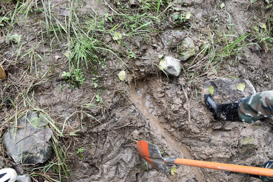 (駐守大堤第天晚上,突擊隊(duì)成員就發(fā)現(xiàn)了處滲漏,匯報后對此處加緊巡檢,防止出現(xiàn)惡化)
