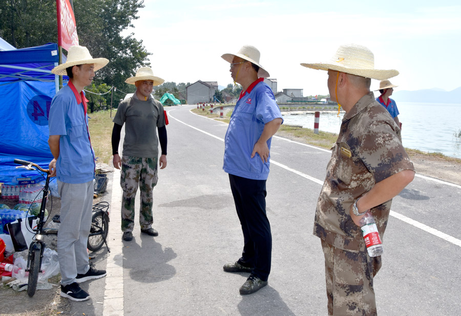 8月3日,驕陽似火,巢湖地區(qū)高溫度達36℃。在如此炎熱的天氣里,皖維防汛突擊隊員們的身體狀況讓公司導時刻記掛在心。這樣的高溫下,突擊隊員狀態(tài)怎么樣?隊員們有哪些實際需要?上班,張正和、吳霖、閆昌斌等導就驅車前往巢湖大堤,慰問防汛線的突擊隊員們。