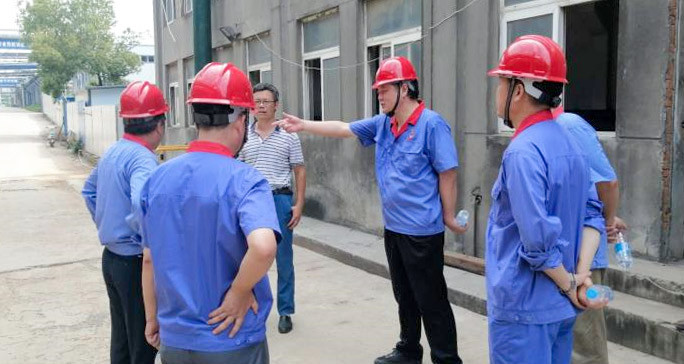 8月3日上午,集團公司黨委書記、董事長吳福勝在10Kt/a汽車膠片級PVB樹脂、60Kt/aVAE、5Kt/a特種PVA三個項目組成員的陪同下,頂著炎炎烈日來到公司冷凍站現(xiàn)場,指導(dǎo)新項目冷凍系統(tǒng)的建設(shè)工作。