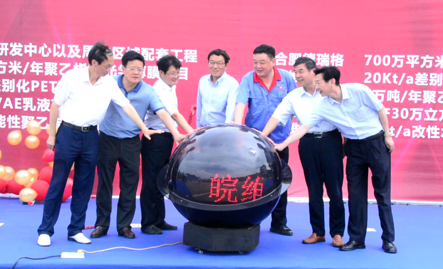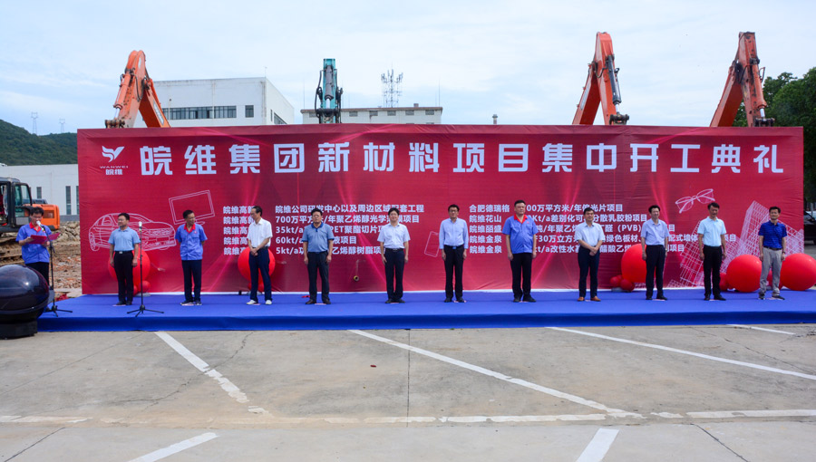8月6日上午,集團公司年產(chǎn)700萬平方米PVA光學(xué)薄膜等10個新材料項目舉行集中開工儀式。巢湖市委書記、安徽巢湖經(jīng)開區(qū)管委會主任耿延強與集團公司黨委書記、董事長吳福勝出席開工儀式并共同宣布10個新材料項目集中開工。巢湖市委副書記、市長張紅軍與集團公司黨委副書記、總經(jīng)理高申保在開工儀式上發(fā)表講話,安徽巢湖經(jīng)開區(qū)管委會黨工委副書記程習(xí)龍、巢湖市人大常委會主任周恩平、政協(xié)主席王興濤等出席開工儀式,儀式由股份公司總經(jīng)理孫先武主持。