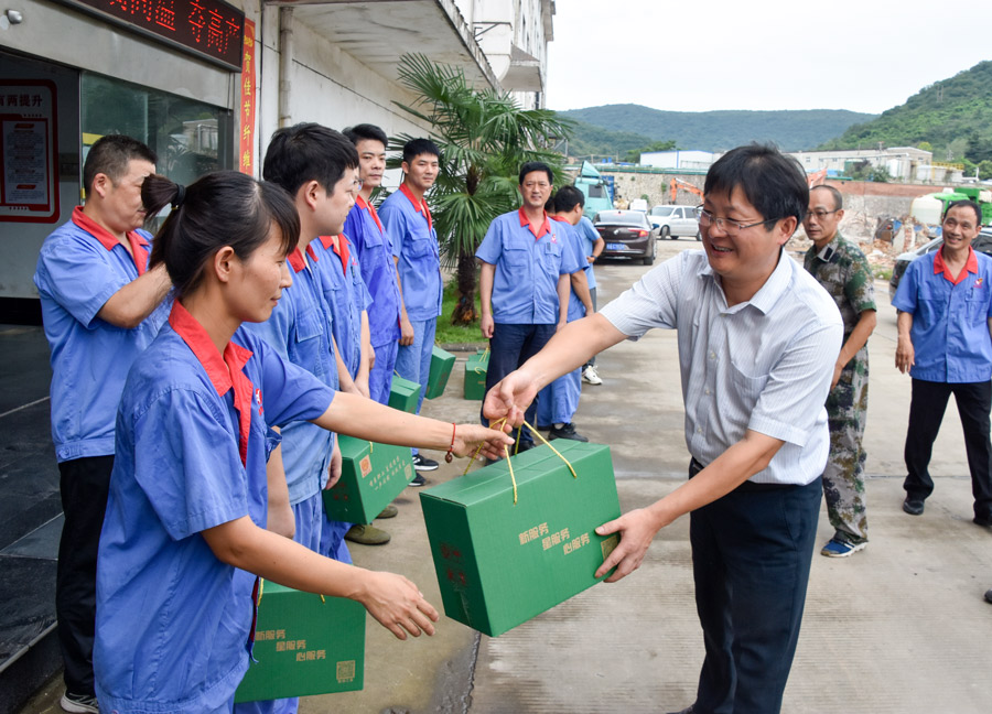 上午9時(shí)許,張紅軍來到大維分廠,將分裝好的夏季防暑降溫用品發(fā)放給在崗職工,詳細(xì)詢問職工在高溫下生產(chǎn)的作息情況,叮囑大家在炎熱的天氣里,注意休息,確保安全。