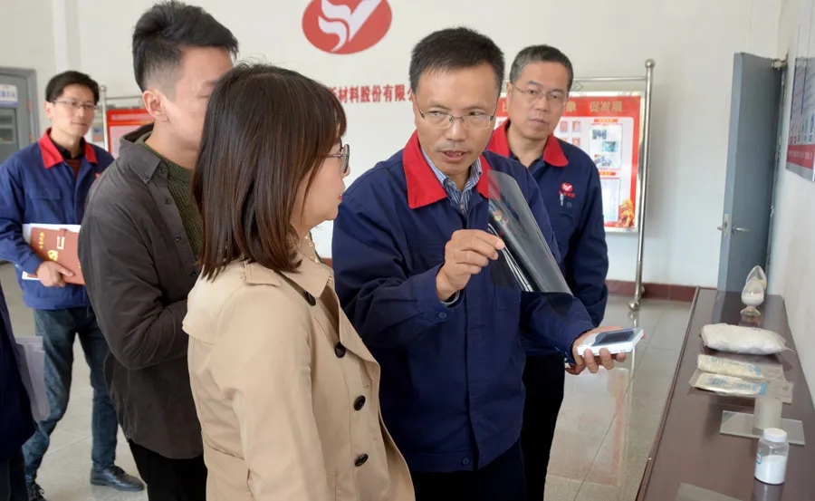 錢(qián)文一行首先來(lái)到PVA膜分廠。高申保向來(lái)賓介紹了公司新建、擬建的重點(diǎn)項(xiàng)目,他表示,當(dāng)前公司正全力推動(dòng)產(chǎn)業(yè)轉(zhuǎn)型升級(jí),以高新技術(shù)作為發(fā)展動(dòng)力,建設(shè)行業(yè)世界當(dāng)先“品質(zhì)皖維”。公司響應(yīng)創(chuàng)新驅(qū)動(dòng)發(fā)展戰(zhàn)略,聚焦PVA光學(xué)膜等關(guān)鍵產(chǎn)品的研發(fā),經(jīng)過(guò)多年研究,已實(shí)現(xiàn)了產(chǎn)品產(chǎn)業(yè)化。此外,為進(jìn)一步攻關(guān)高端PVA膜的關(guān)鍵重要技術(shù),公司還與中國(guó)科學(xué)技術(shù)大學(xué)成立聯(lián)合實(shí)驗(yàn)室,已在多個(gè)方面取得重要進(jìn)展,為產(chǎn)品打破國(guó)外壟斷,加速推動(dòng)顯示行業(yè)國(guó)產(chǎn)化作出了皖維貢獻(xiàn)。