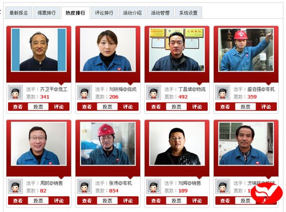在昨天的得票前八強中,有機分廠張偉繼續(xù)跑,同時出現(xiàn)熱電分廠楊輝的身影;在人氣排行中,黨工部齊衛(wèi)平保持先,機械設(shè)備公司方瑞林?jǐn)D進(jìn)前八強。