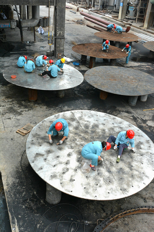“蓮花”——在有機(jī)檢修現(xiàn)場(chǎng)角,圓形的設(shè)備宛如朵盛開(kāi)的蓮花,
