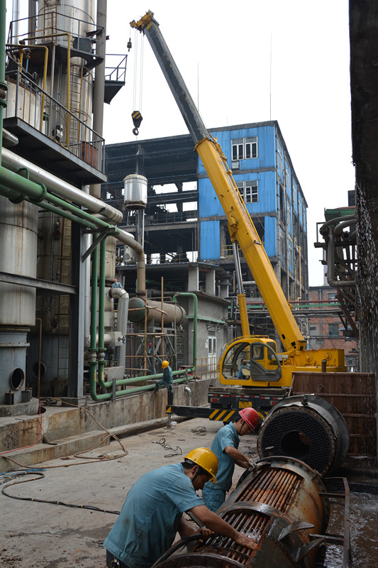 三年度的公司設(shè)備大修于7月1日拉開(kāi)帷幕。圖為有機(jī)檢修現(xiàn)場(chǎng)角