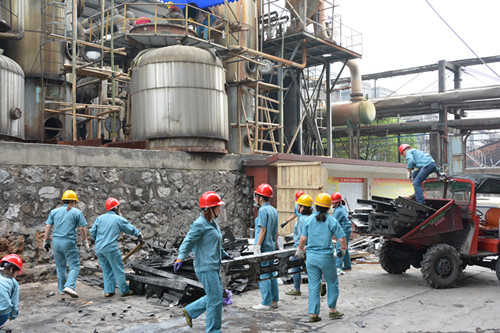 借大修改造之機(jī),水泥分廠對(duì)環(huán)境進(jìn)行整治。圖為職工在清理積灰