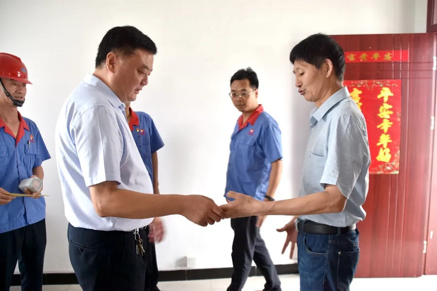 6月30日上午,在建黨100周年來臨之際,集團公司黨委書記、董事長吳福勝率人力資源部、黨委工作部負責(zé)人前往花山公司看望慰問困難黨員,給他們送去黨的關(guān)懷和溫暖,致以節(jié)日的問候。