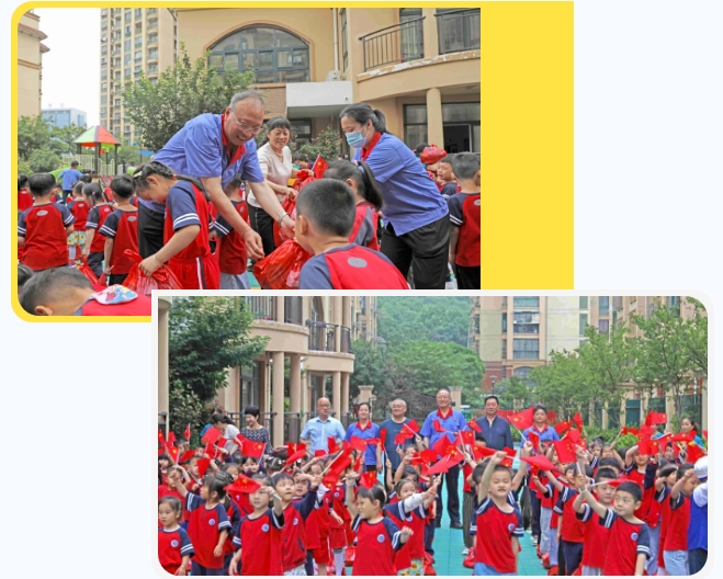 走進(jìn)幼兒園,恰逢升國(guó)旗儀式,張正和等肅然而立,行注目禮,共同參與這莊嚴(yán)的升旗儀式。小護(hù)旗手邁著鏗鏘有力的步伐,護(hù)送著鮮艷的五星紅旗步入升旗臺(tái),鮮艷的五星紅旗迎風(fēng)展開(kāi),全場(chǎng)小朋友唱起國(guó)歌,向莊嚴(yán)的五星紅旗行注目禮,莊嚴(yán)的氛圍感染著全園師生??粗⒆觽円粡垙堊孕趴蓯?ài)的笑臉,在場(chǎng)眾人為孩子們擁有如此美好的童年感到欣喜與欣慰,紛紛為可愛(ài)的孩子們鼓掌點(diǎn)贊。